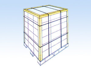 立角保护:护角板可把货物固定 在托盘上,同时也起保护作用。 |